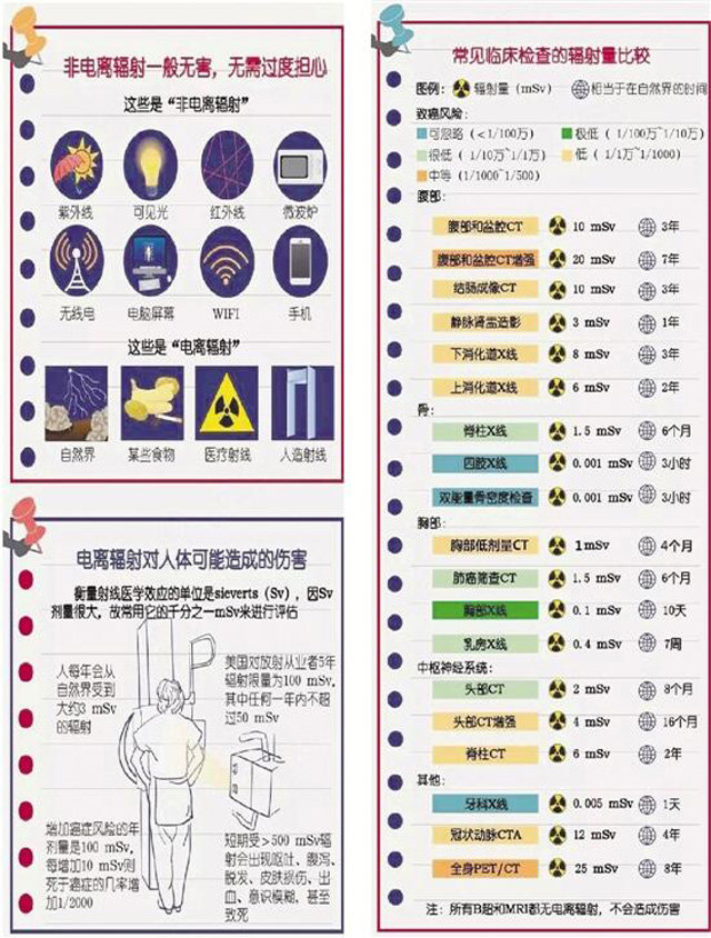 体检车经过几十年的发展越来越先进,DR体检车上面装有车载DR设备。可以做胸部X光线检查。一台透视仪在体检者胸前来回移动照射,医生在另一头的检查室观察。体检车放射检查的确有利有弊是一把双刃剑,不应检查过度,也不必因此讳疾忌医。因为通过检查可以更加容易对患者的病情确诊,对症下药。放射性体检,对身体或多或少有点伤害,主要的危害是放射检查对91抖音视频在线观看是通过来自X线产生的电离进行辐射。但是在必须检查的情况下研究表明利大于弊,因为接受一定量的辐射是正常的。体内可以自我修复。一个大人接受一年100毫西弗的辐射对身体没多大伤害的。但是不能过度放射检查。当有必要做的。当数不能过于频繁的情况或逐步改善无显著变化,也没有必要每天进行审查,否则成为放疗的变相。以下是常见临床检查的辐射量比较图