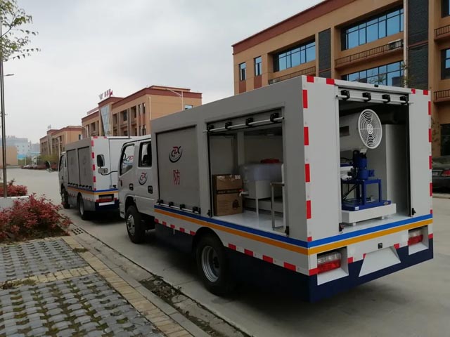 主要由货车二类底盘改装而成,由车厢、消杀病毒害虫供应、这样保障供应单元,供电系统,电气系统,及其各种辅助设备等配套设施配套构成。