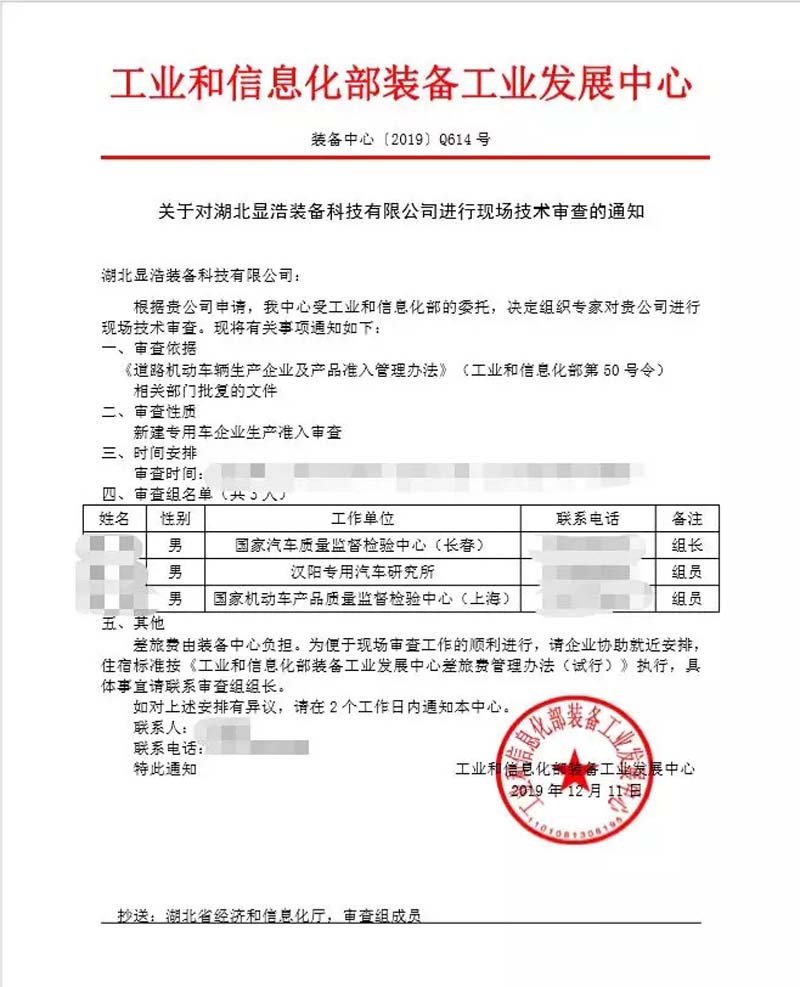 2019年12月19日湖北省91抖音视频在线观看装备科技有限公司迎来了工信部委派的三位技术审查专家,三位专家对我司申请的医疗车,献血车,负压救护车,等专用车企业准入进行现场技术审查。