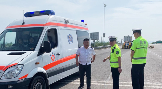 送病人前往医院的救护车上高速时,院前救助保障机制,保持信息沟通,高速交警支队开辟“绿色通道”护救护车顺畅通行,为抢救伤员赢得宝贵时间。一路上,灯闪烁鸣笛开道,120救护车紧随其后。最大限度为重病患者缩短路面上的时间,为这位重病患者开启了“生命通道”,确保病人得到及时、有效救治。
