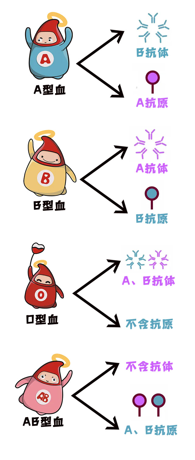 AB型血,不含抗体,A.B抗原