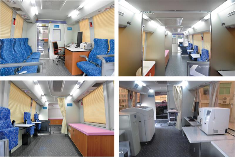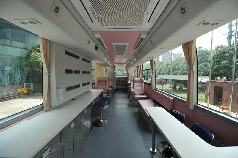 专业的流动献血车厂家会将现代健康体检理念融汇于整车研发过程,看似小小的献血车实际所用到医疗设备一应俱全,大部分流动的献血车和采血车都有空调、发电机、热合机台、恒温保鲜冰柜、休息床、工作台、工作椅、工作桌、立式饮水机、烘手机、采血冰箱 30米电缆轴、配电柜、采血椅、采血台、紫外线消毒灯、 污物桶、灭火器、排风系统等。这种移动的献血车和体检车类似,是一个移动体检中心可用于现场体检和采血。